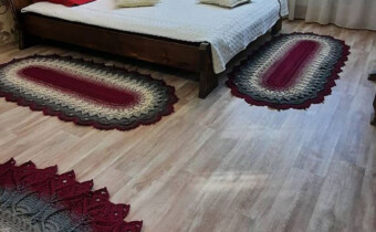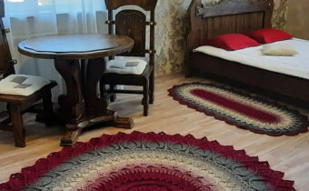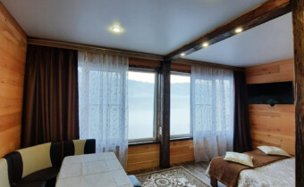 В номере: телевизор, холодильник, 2-х спальная кровать, раскладной диван, 2 раскладушки, стол, 2 стула, чайник, одноразовые тапочки, белые махровые халаты, полотенца.