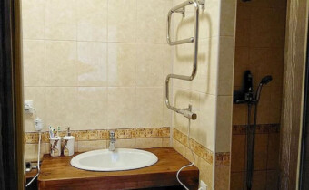 В ванной: туалет, раковина, душ. Кухня общая расположена в соседней комнате на территории гостиницы.
