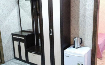 В номере: телевизор, холодильник, 2-х спальная кровать, диван, стол, 2 стула, чайник, одноразовые тапочки, белые махровые халаты, полотенца.